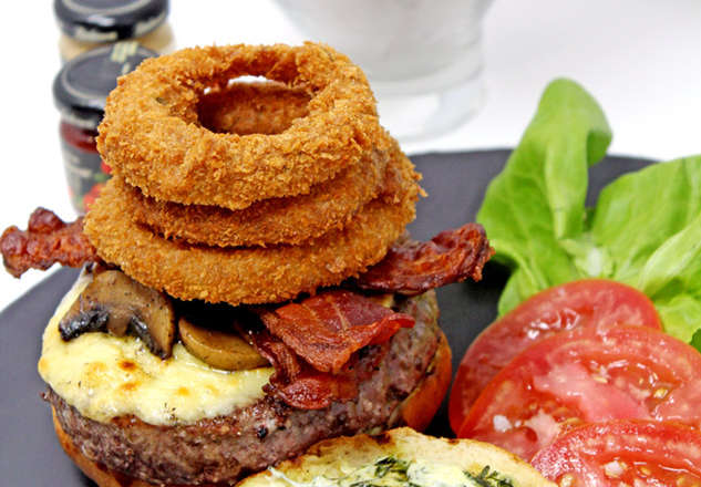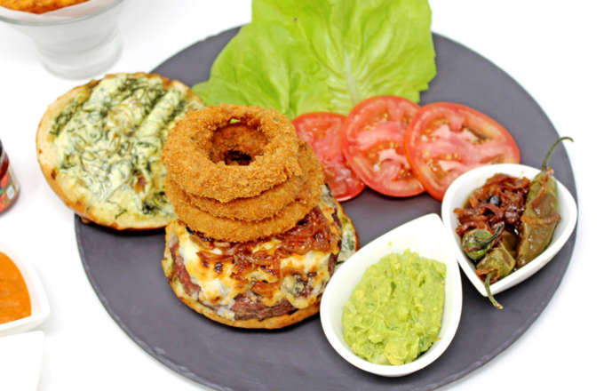All of our burgers are prepared with prime beef, freshly baked burger buns with sesame and are served with: panko fried onion rings, french lettuce, hydroponic tomato, spinach mayonnaise, dijon mustard, ketchup, beans special recipe and “waffle” potato.